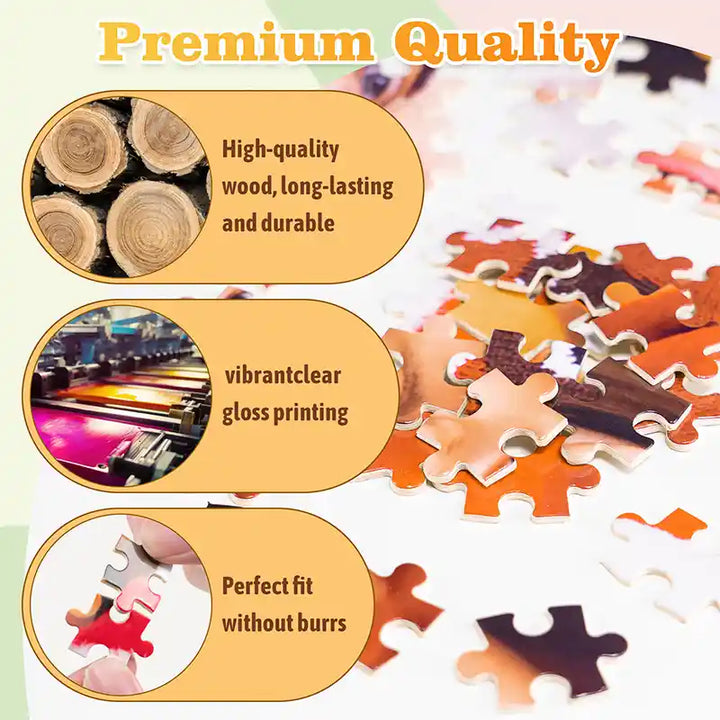 • MORE CHOICES-Support customize different colors of text on photos, choose shapes/sizes/number of pieces, even wooden frame & box!