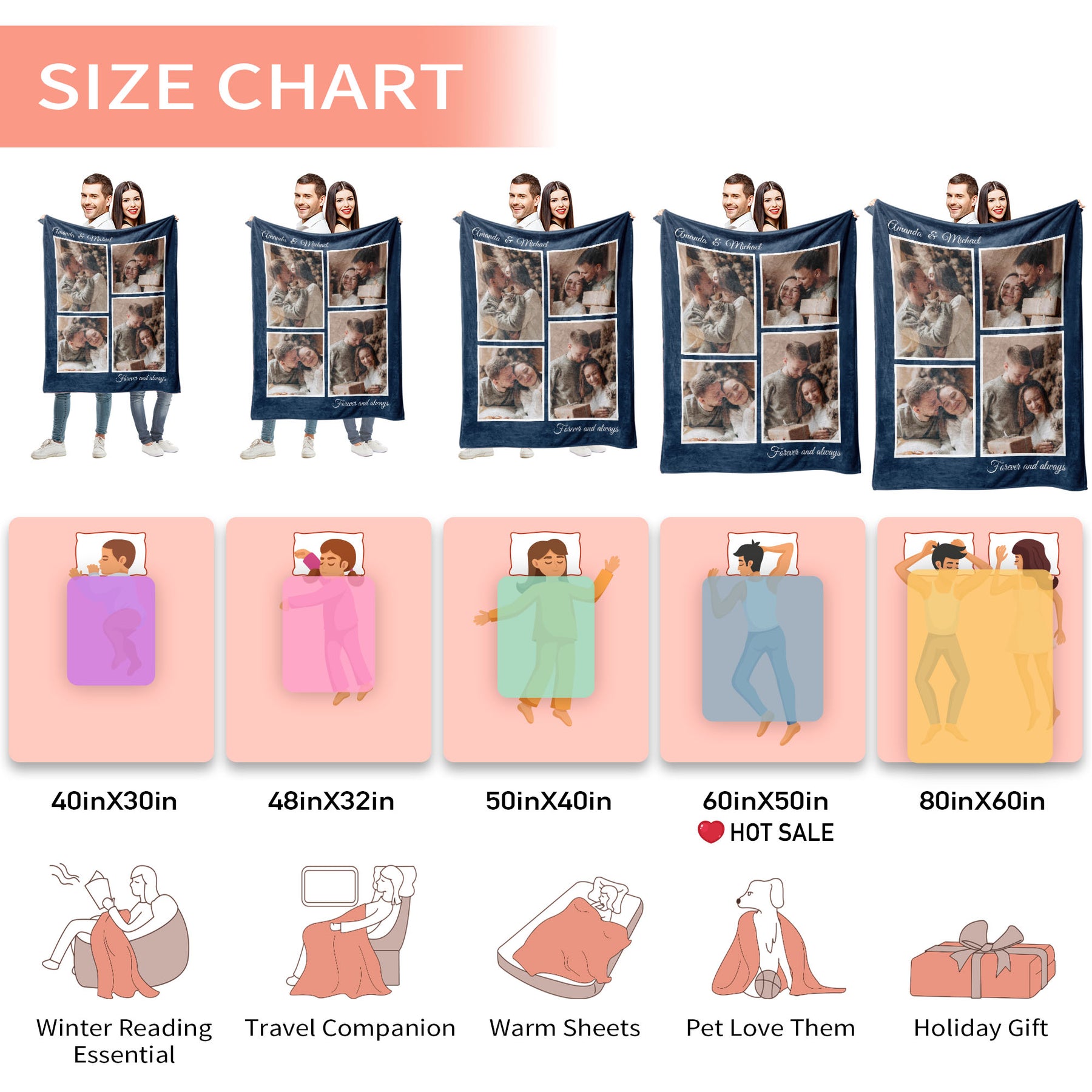 - 💟Amazing Custom Blanket: This personalized blanket with picture is the ideal gift to capture cherished moments with your loved ones. Create a timeless keepsake to treasure for years to come, perfect for anniversaries, birthdays, Valentine's Day, engagements, and weddings. It's the most memorable gift for girlfriend, boyfriend, wife and husband, bringing not only happiness but also warmth to your family.
