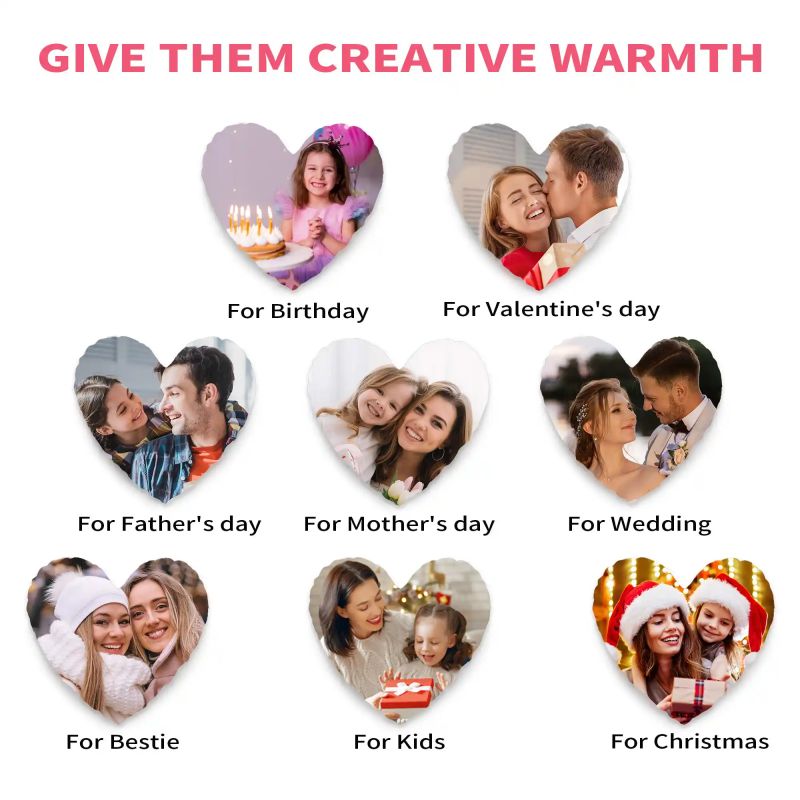 Custom Photo Two-Sides Heart Velvet Pillow Cover With Text