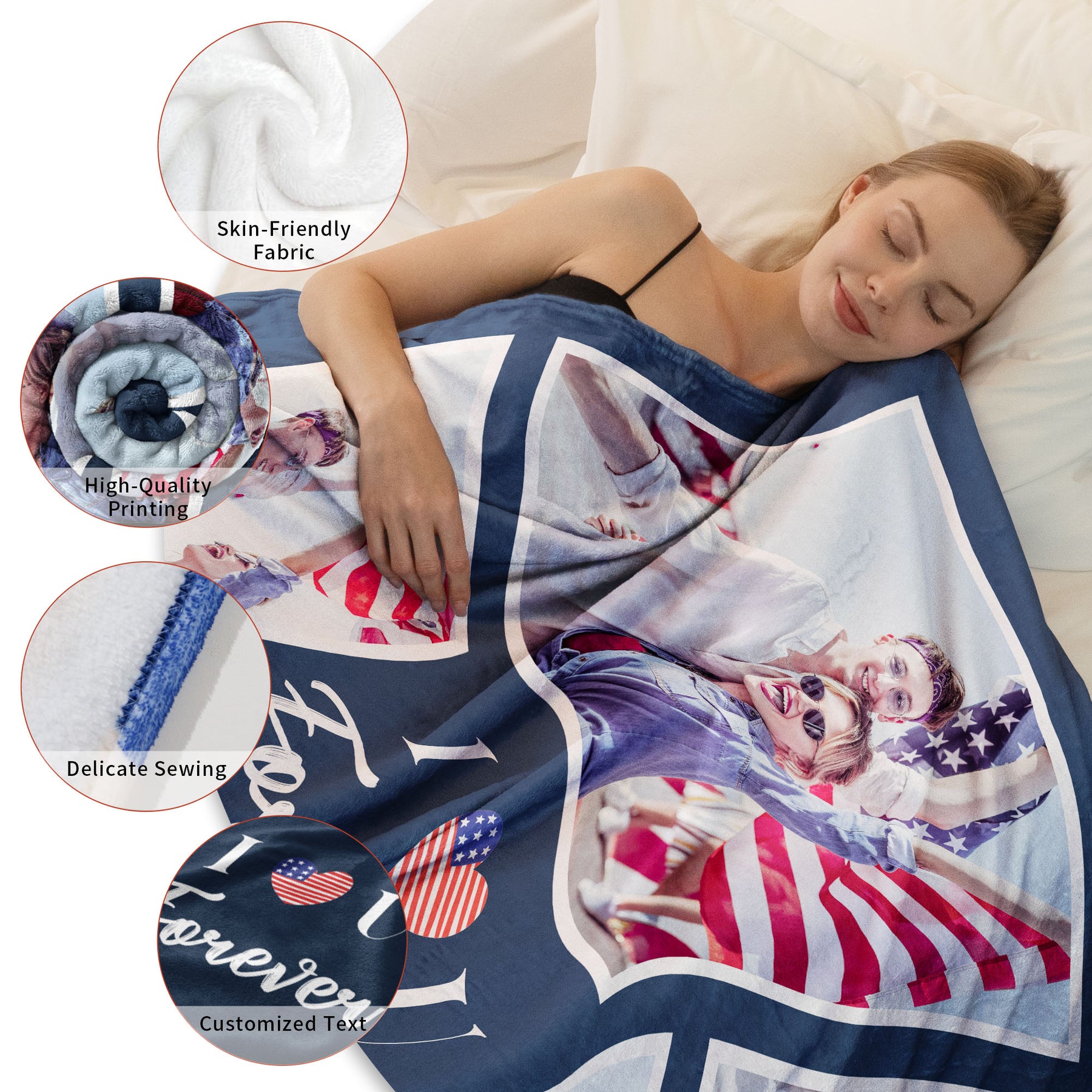 - 💟Amazing Custom Blanket: This personalized blanket with picture is the ideal gift to capture cherished moments with your loved ones. Create a timeless keepsake to treasure for years to come, perfect for anniversaries, birthdays, Valentine's Day, engagements, and weddings. It's the most memorable gift for girlfriend, boyfriend, wife and husband, bringing not only happiness but also warmth to your family.