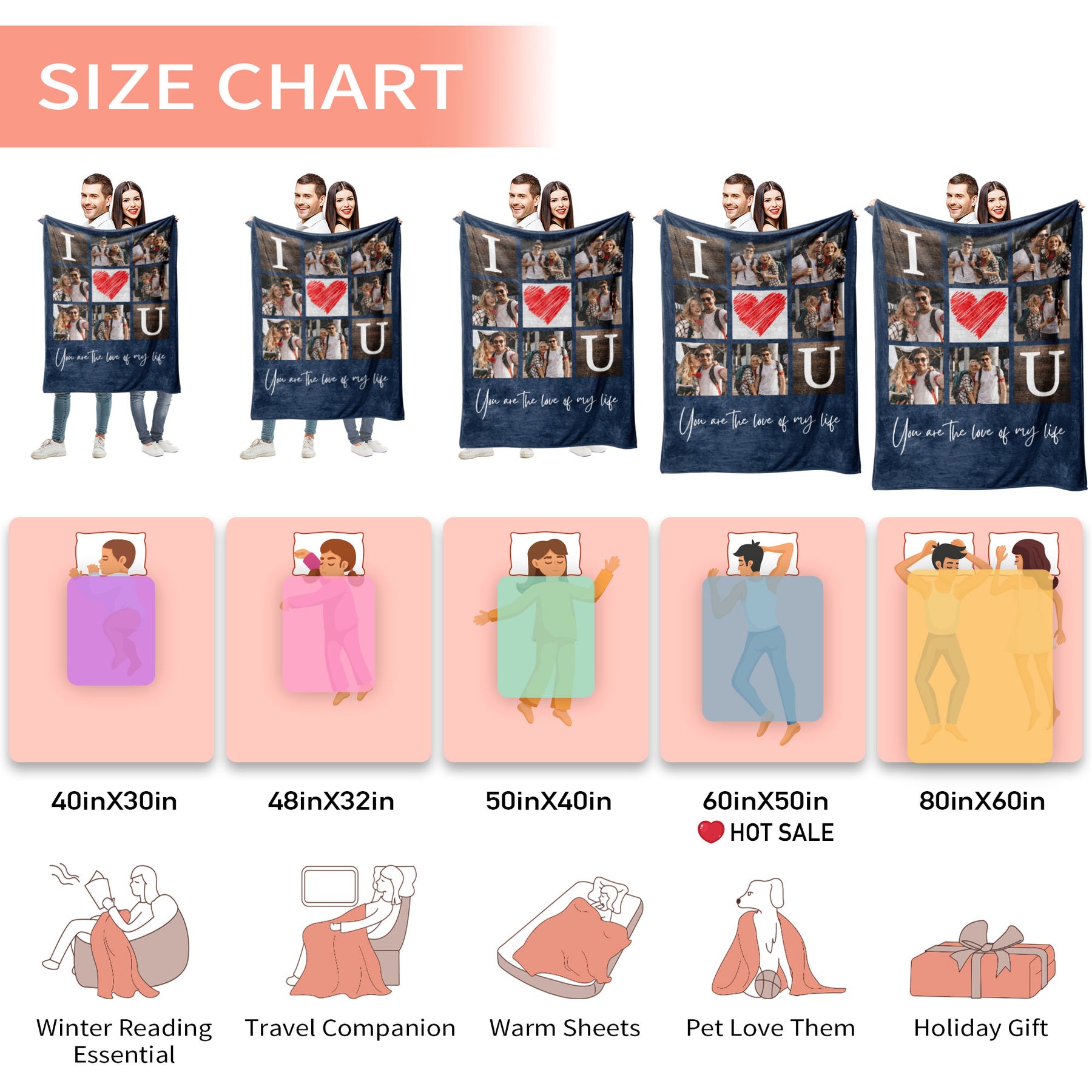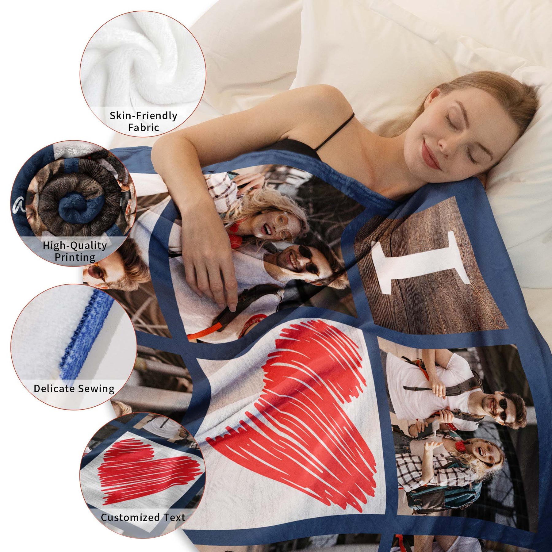 - 💟Amazing Custom Blanket: This personalized blanket with picture is the ideal gift to capture cherished moments with your loved ones. Create a timeless keepsake to treasure for years to come, perfect for anniversaries, birthdays, Valentine's Day, engagements, and weddings. It's the most memorable gift for girlfriend, boyfriend, wife and husband, bringing not only happiness but also warmth to your family.