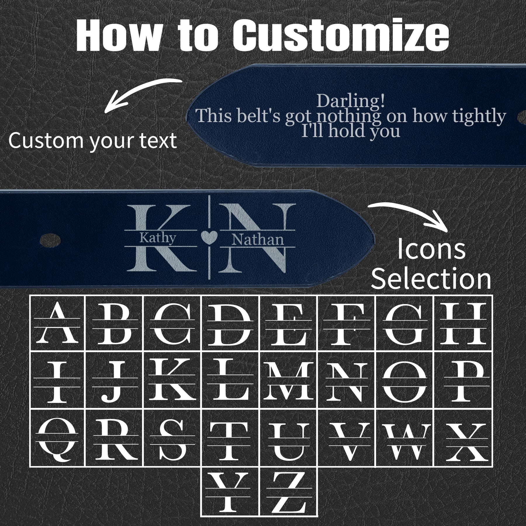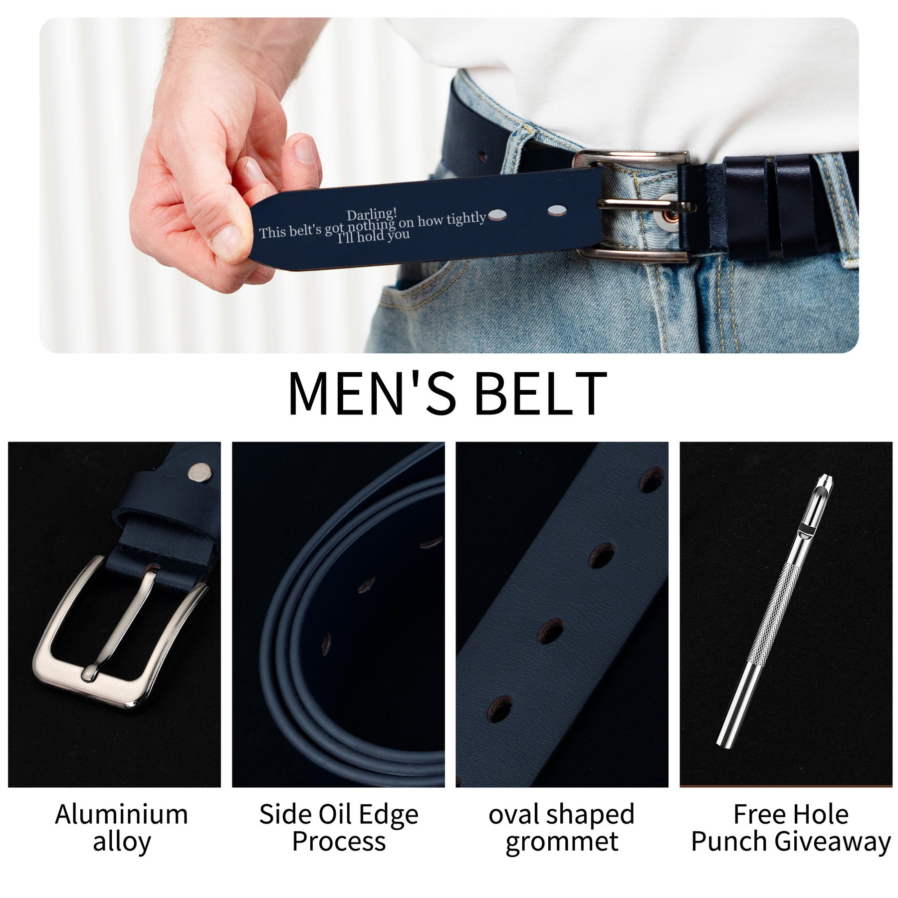 • 👑Custom Laser Engraving – Personalize your belt with names, dates, or meaningful messages. Laser engraving is available on both sides, allowing you to create a unique piece that reflects your personal style or makes a thoughtful gift for someone special.
